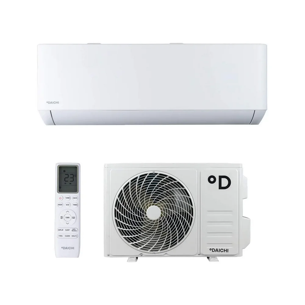 Кондиционер Daichi AIR on/off — надежная настенная сплит-система для эффективного охлаждения, обогрева и улучшения качества воздуха в жилых и коммерческих помещениях. Модель оснащена предварительным фильтром с ионами серебра, угольным CARBON и фотокаталитическим фильтрами, что обеспечивает многоступенчатую очистку воздуха от пыли, запахов и бактерий.