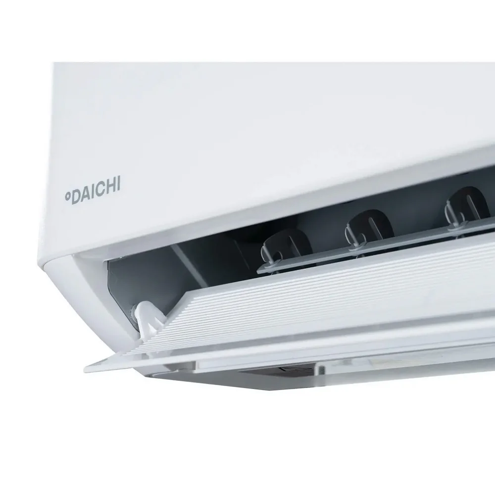 Кондиционер Daichi AIR on/off оснащен функциями автоматического перезапуска, самодиагностики, теплого старта и оптимального оттаивания. Противоплесневая обработка и антикоррозионное покрытие наружного блока увеличивают срок службы оборудования. LED-дисплей отображает текущие параметры работы.
