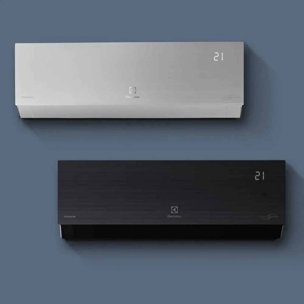 Electrolux Enterprise Super DC Inverter — премиальный инверторный кондиционер в дизайне Lux, разработанный для стабильной и экономичной работы в любых климатических условиях. Модель выпускается в двух цветовых решениях с эффектом плиссе: классический белый корпус с белым пультом и стильный графит матовый с черным пультом, что позволяет гармонично вписать сплит-систему в современный интерьер.