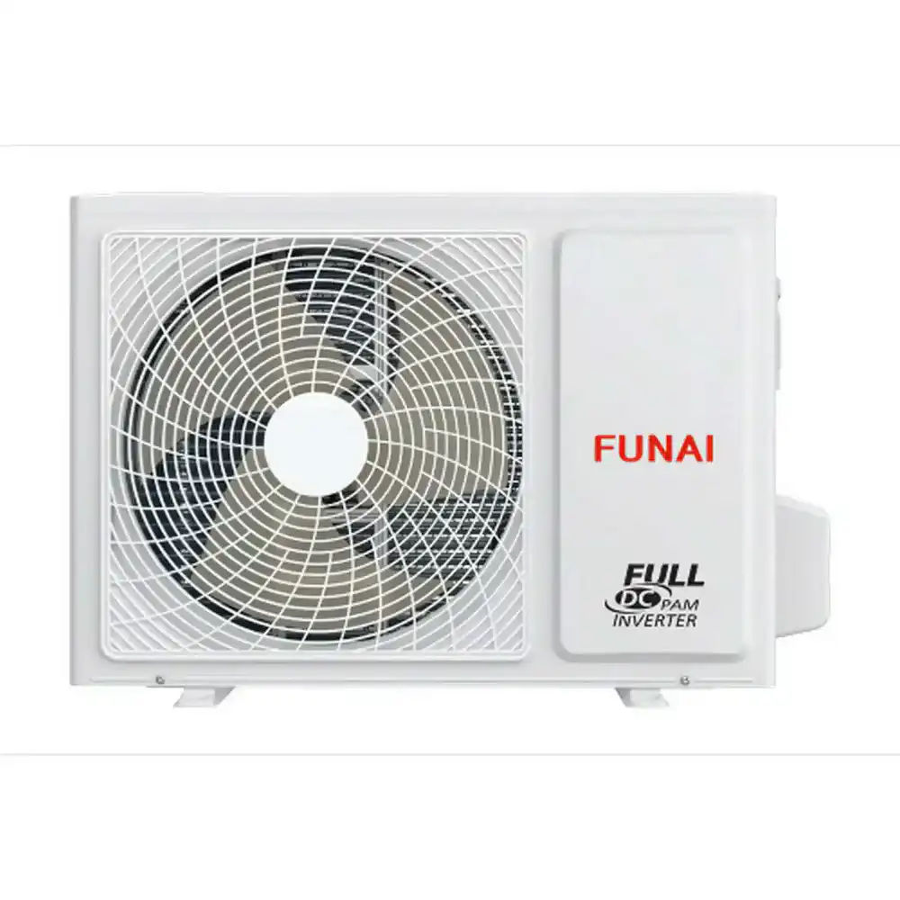 Инверторный кондиционер Funai оснащён мощным ионизатором HI-NANO, системой Smart Air Inspection для контроля температуры и влажности воздуха, а также автоматическим распределением потока в четырёх направлениях. Функция SMART FULL ICE Clean очищает внутренний и внешний блок методом замораживания. Встроенный Wi-Fi модуль поддерживает управление через Яндекс Алису (Android).