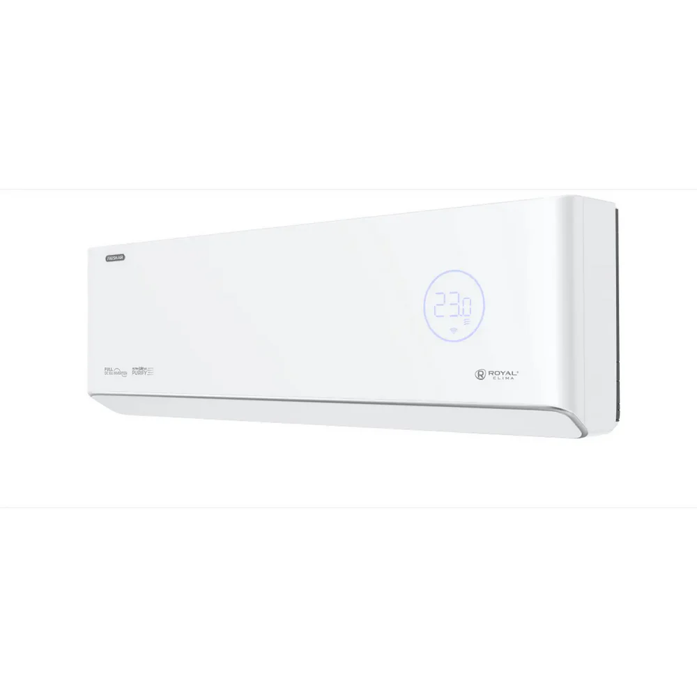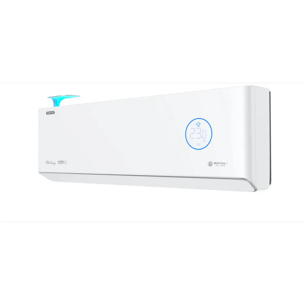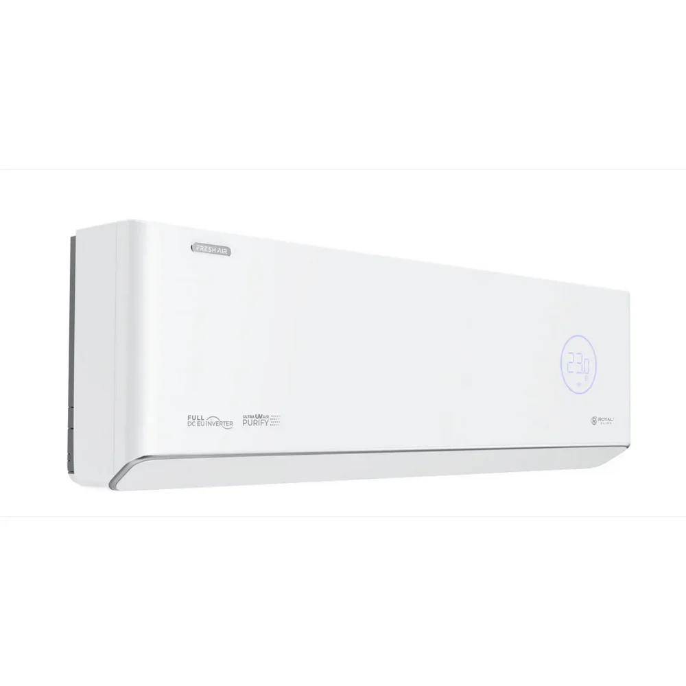 Кондиционер Royal Clima Royal Fresh Full DC EU Inverter — современная сплит-система премиального уровня для комфортного микроклимата в квартире, доме или офисе. Модель оснащена функцией притока свежего воздуха с производительностью до 60 м³/ч и высокоэффективным фильтром HEPA H11, обеспечивающим очистку воздуха от пыли, аллергенов и загрязнений.