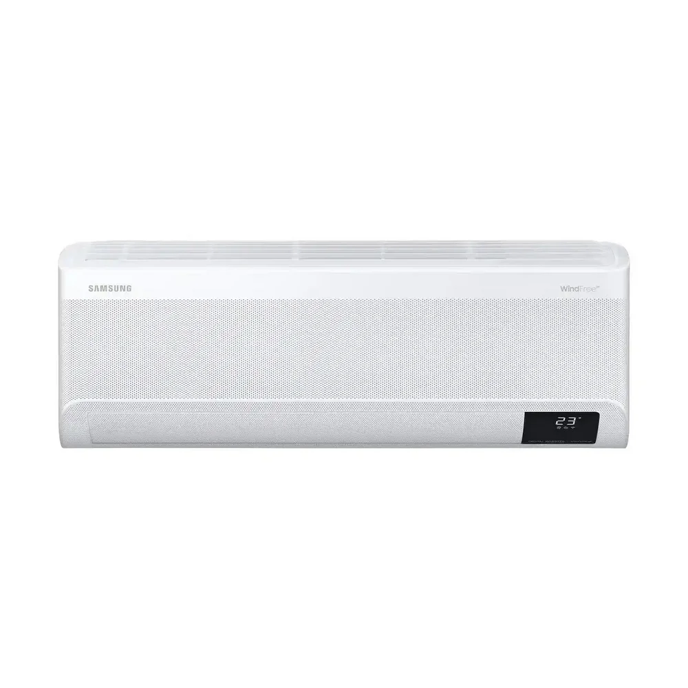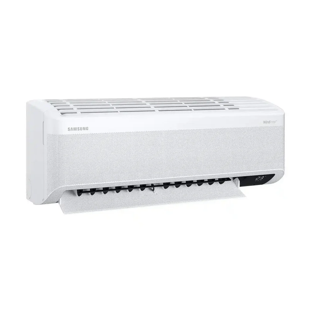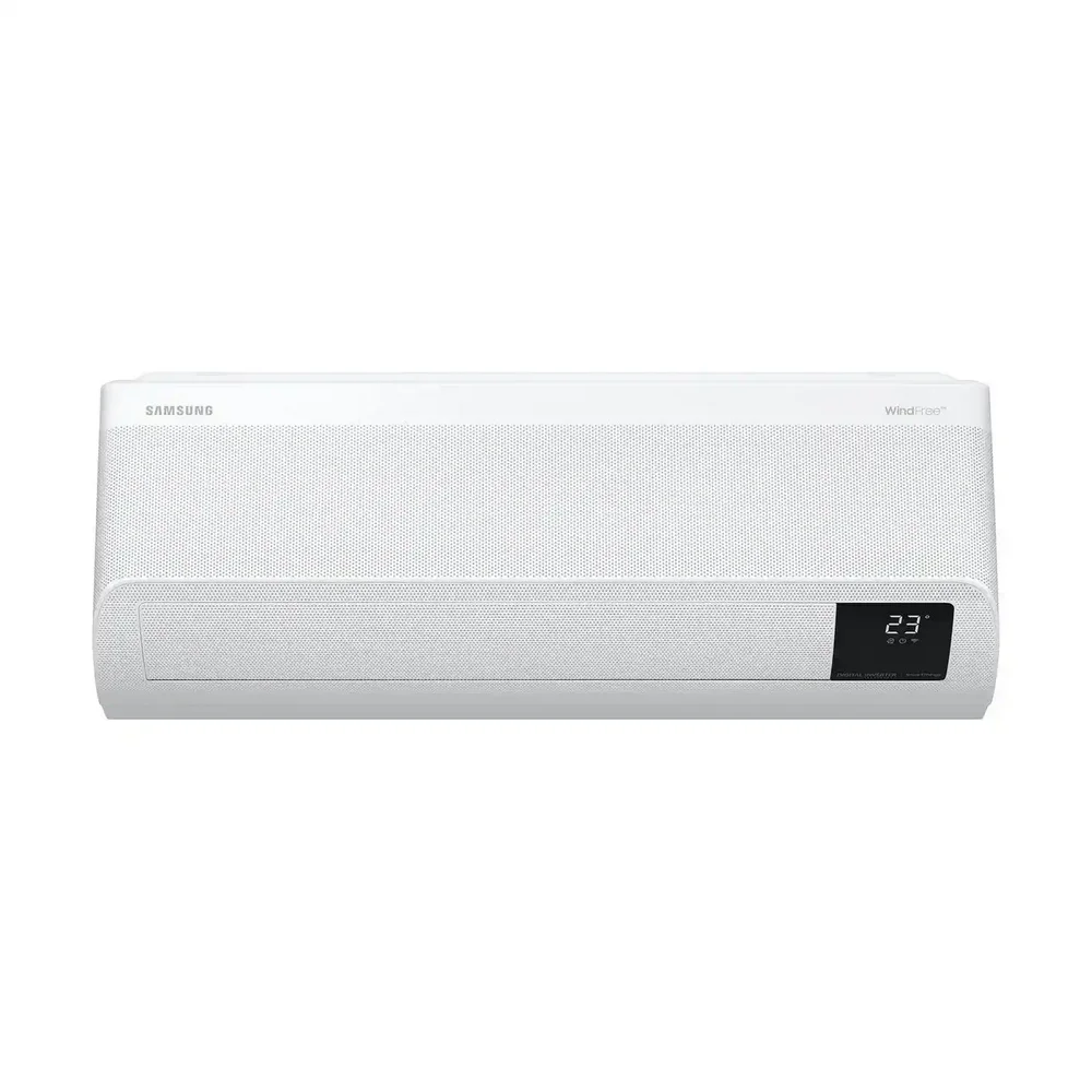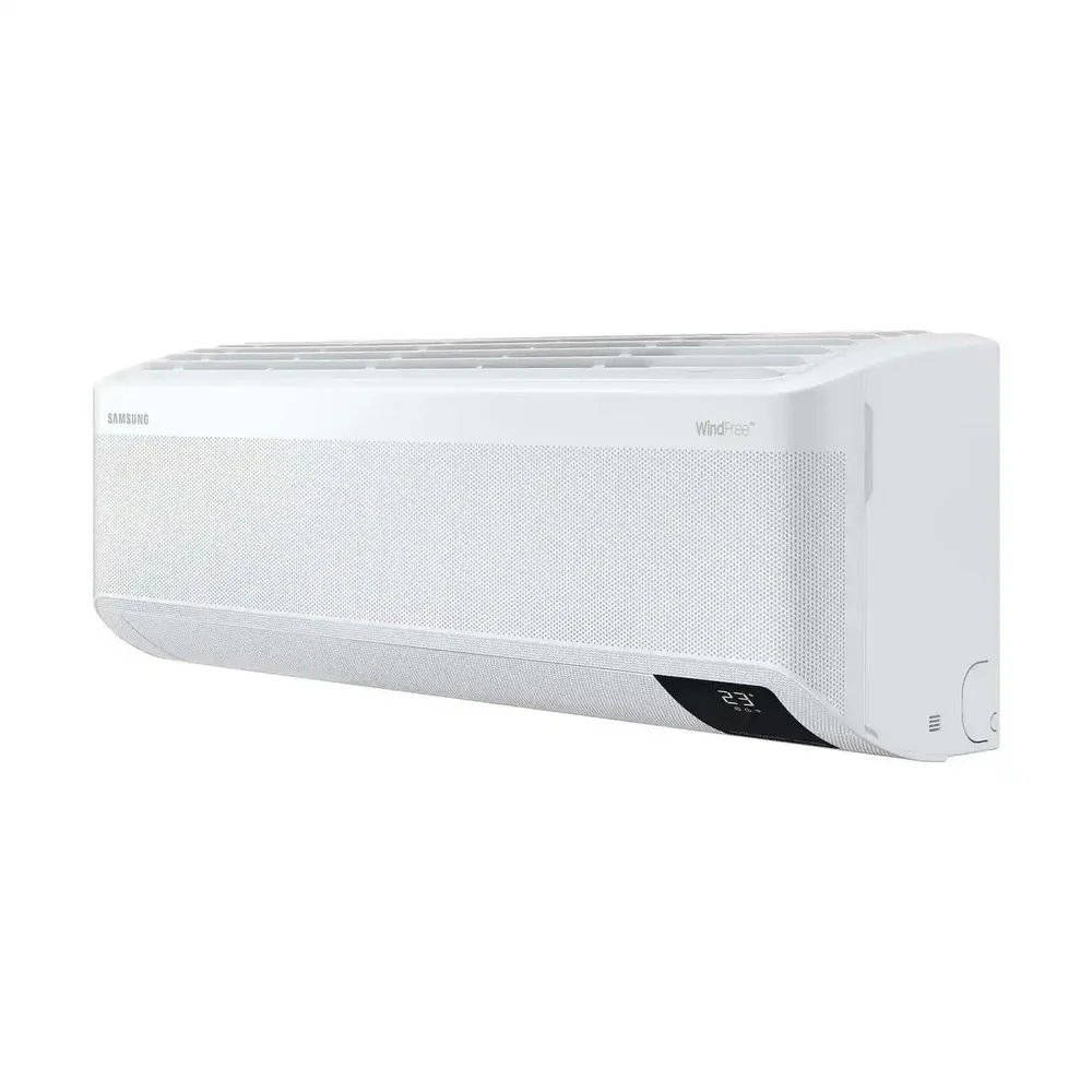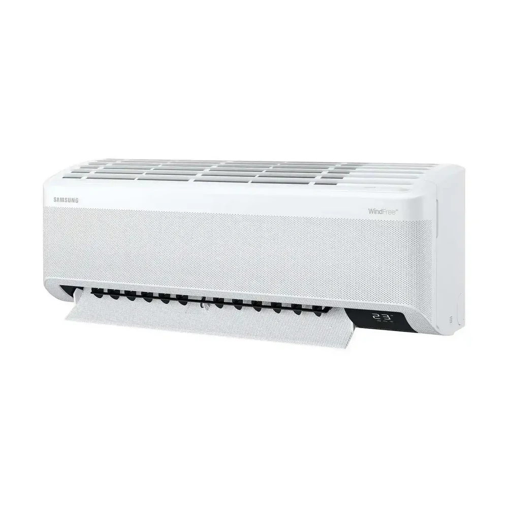 SAMSUNG Mass GEO WindFree — инверторный кондиционер с хладагентом R410A, созданный для стабильного охлаждения без сквозняков. Технология WindFree™ распределяет воздух через микроперфорацию, обеспечивая комфортную температуру и минимальный уровень шума. Интеллектуальная система AI Auto Cooling анализирует условия в помещении и автоматически подбирает оптимальный режим работы.